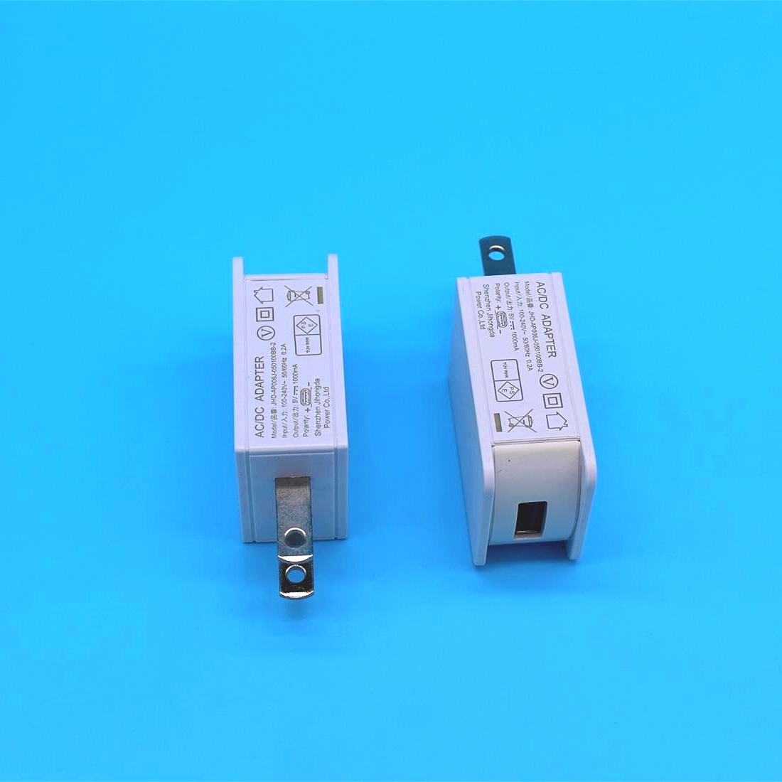 5V1A日规PSE认证USB充电器,USB电源适配器。产品型号:JHD-AP006J-050100BB-2,输出电压5V,输出电流1A,最大输出功率6W,内置电子兼容防干扰线路,通过CB,PSE,UL,CUL,FCC,CE,CCC等认证,广泛应用于小家电、电子数码、IT通讯、安防监控、照明等。